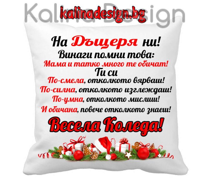 Възглавничка с Коледен надпис - На ДЪЩЕРЯ ни!