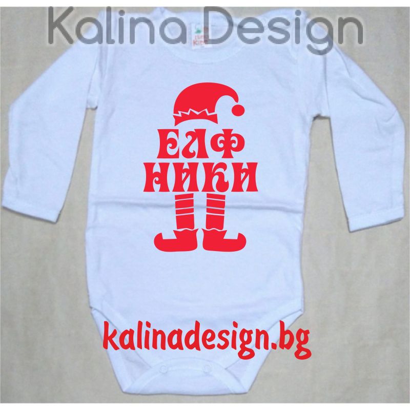 Бебешко боди дълъг ръкав с коледен надпис: ЕЛФ+ ИМЕ по Ваш избор
