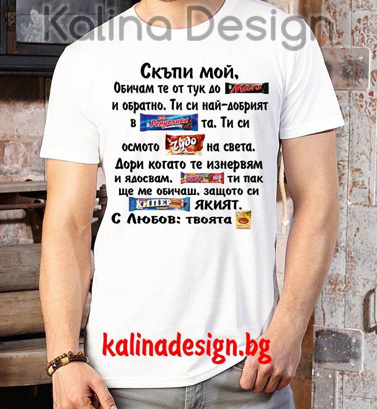 Тениска със забавен надпис - Скъпи мой, обичам те от тук до Марс и обратно. Ти си най-добрият в Републиката. Ти си осмото ЧУДО на света........С любов твоята МЕДЕНКА любимка