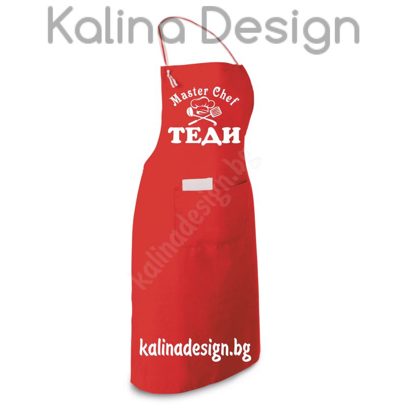 Престилка с надпис MASTER CHEF ТЕДИ +картинка - оригинален подарък за имен ден ТОДОРОВДЕН, рожден ден, Коледа, Нова година и други поводи!