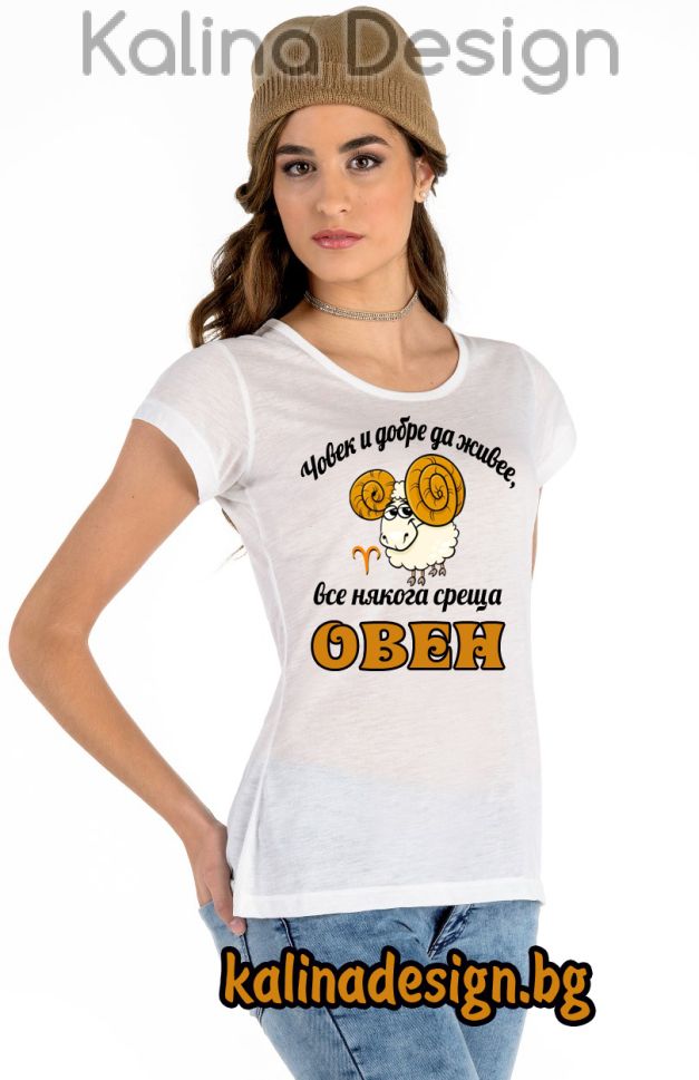 Дамска тениска Човек и добре да живее, все някога среща ОВЕН - вариант 2