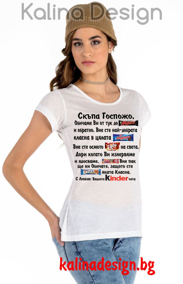 Забавна тениска с надпис: Скъпа Госпожо, обичаме Ви от тук до Марс и обратно. Вие сте най-добрата КЛАСНА в цялата Република. Вие сте осмото ЧУДО на света........