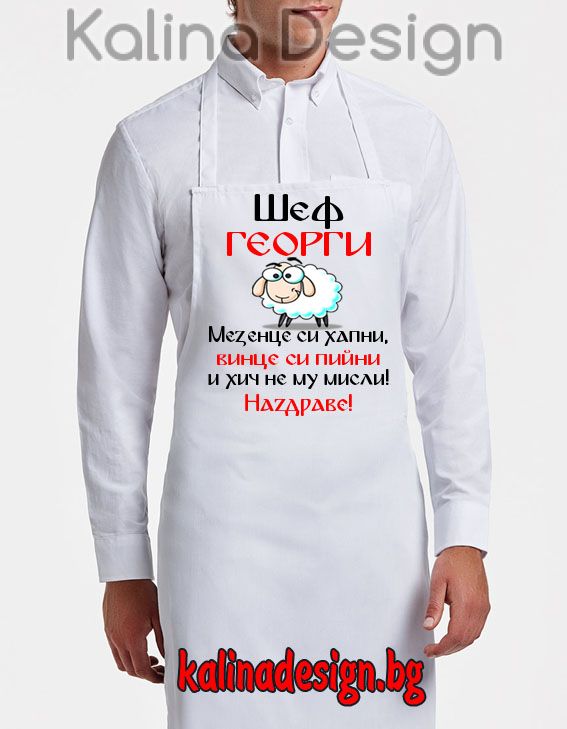 Престилка с надпис Шеф ГЕОРГИ мезенце си хапни, винце си пийни и хич не му мисли! НАЗДРАВЕ!