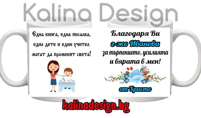 Чаша с надпис Благодаря Ви госпожо....за търпението, усилията и вярата в мен!