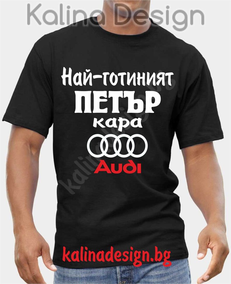 Тениска със забавен надпис - Най-готиният ПЕТЪР кара АУДИ!
