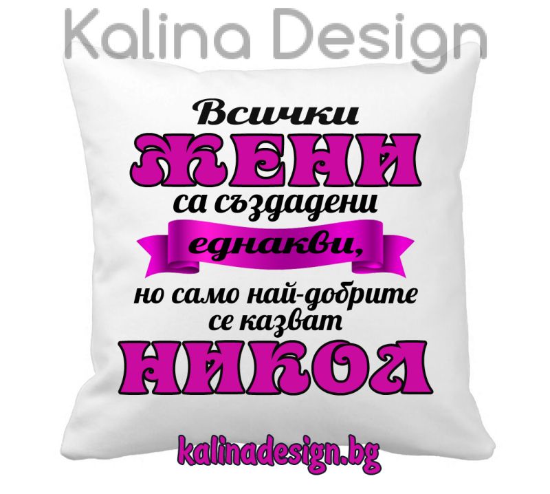 Възглавничка с надпис -Всички ЖЕНИ са създадени еднакви, но само най-добрите се казват НИКОЛ