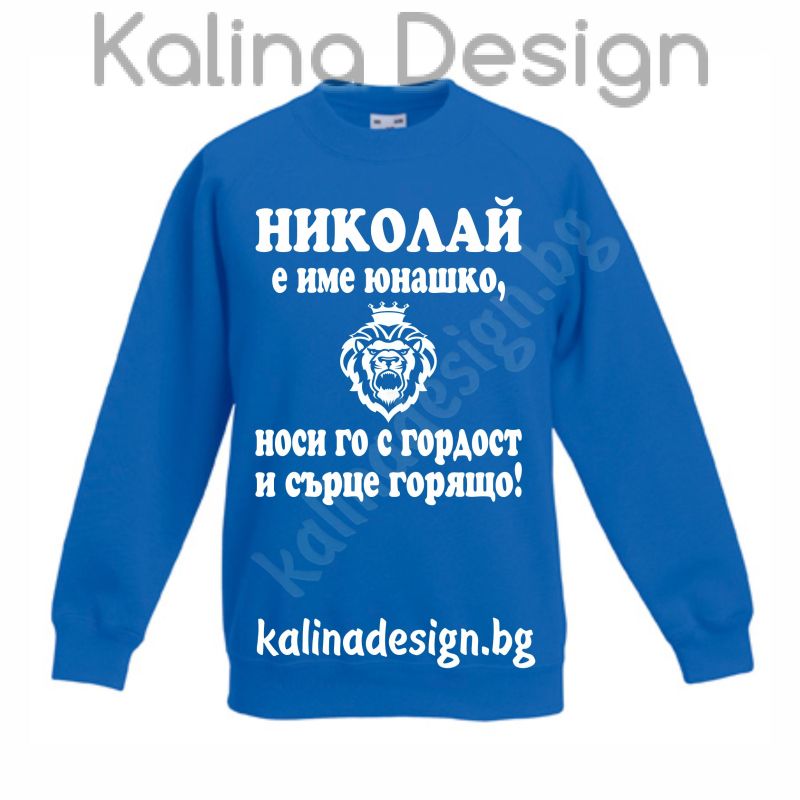 Детска ватирана блуза дълъг ръкав със забавен надпис - Николай е име юнашко, носи го с гордост и сърце горящо!
