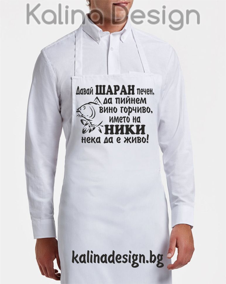Престилка с надпис Давай ШАРАН печен, да пийнем вино горчиво, името на НИКИ нека да е живо!