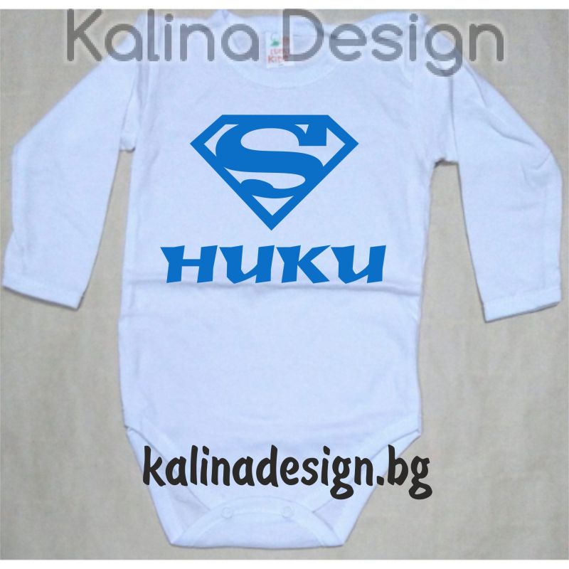 Бебешко боди дълъг ръкав със забавен надпис: Супер НИКИ!