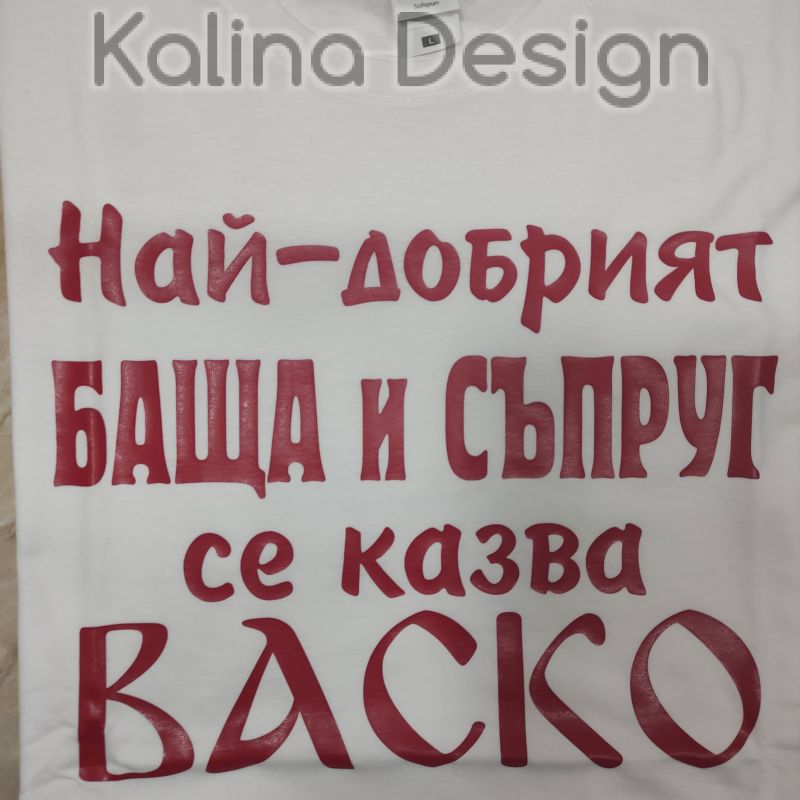 Забавна тениска за Василовден с надпис Най-добрият БАЩА и СЪПРУГ се казва ВАСКО