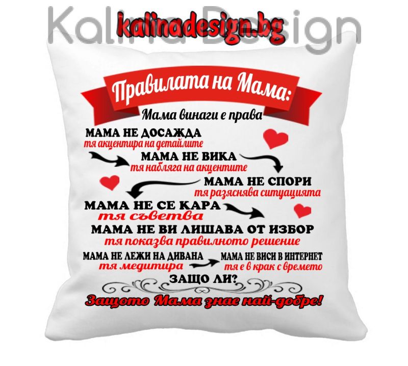 Декоративна възглавничка с надпис - Правилата на МАМА