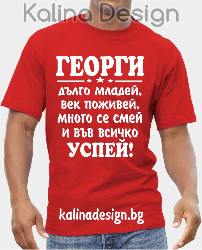 Тениска ГЕОРГИ дълго младей, век поживей, много се смей и във всичко успей!