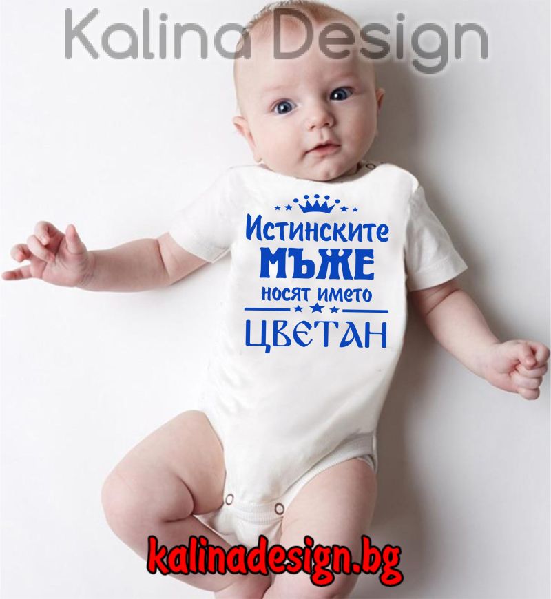 Бебешко боди с къс ръкав със забавен надпис Истинските мъже носят името ЦВЕТАН