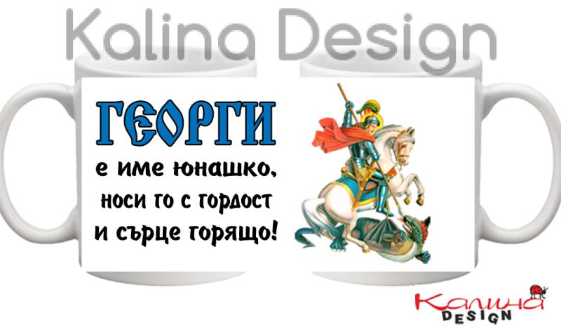 Чаша с надпис ГЕОРГИ е име юнашко, носи го с гордост и сърце горящо!- прекрасен подарък за Гергьовден, Коледа, Нова година, рожден ден и други поводи.