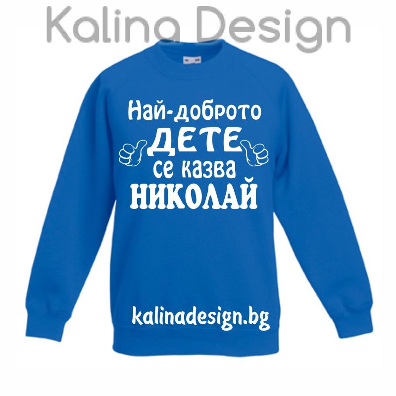 Детска ватирана блуза дълъг ръкав със забавен надпис - Най-доброто ДЕТЕ се казва НИКОЛАЙ!