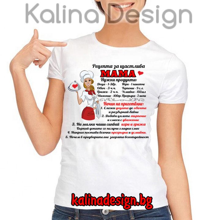 Забавна тениска с надпис: Рецепта за щастлива МАМА