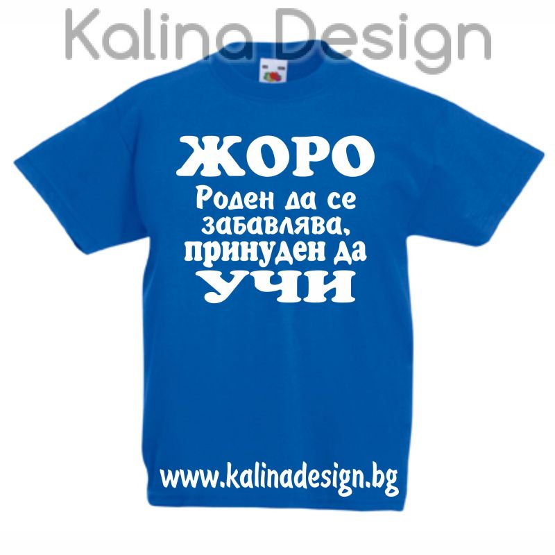 Детска тениска със забавен надпис - ЖОРО - роден да се забавлява, принуден да УЧИ