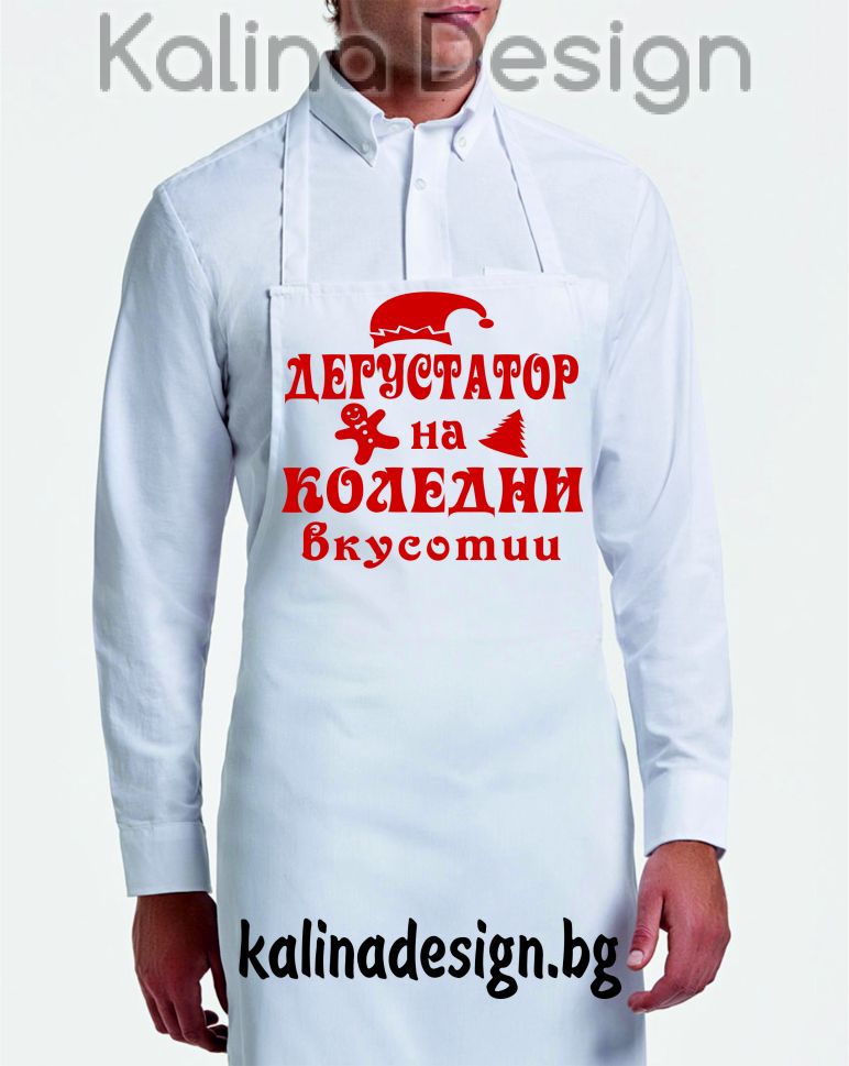 Престилка с надпис ДЕГУСТАТОР на КОЛЕДНИ вкусотии - оригинален подарък за имен ден, рожден ден, Коледа, Нова година и други поводи!