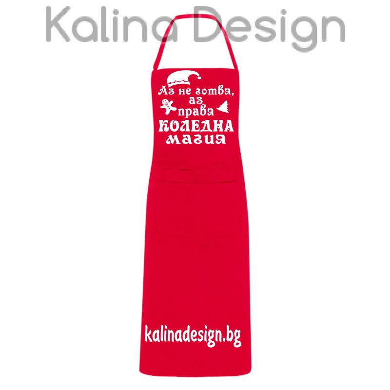 Престилка с надпис Аз не готвя, аз правя КОЛЕДНА магия - оригинален подарък за Коледа, имен ден, рожден ден и други поводи!