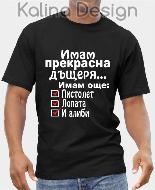 Тениска с надпис - Имам прекрасна дъщеря. Забавен подарък за всеки повод - имен ден, рожден ден, Коледа и Нова година, юбилей и др.