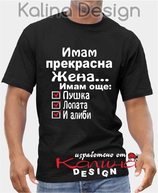 Тениска 100% памук, производител Fruit of the Loom. Щампата е изработена от висококачествено текстилно фолио издръжливо на пране. Дизайн и печат на щампата - Калина Дизайн ЕООД.