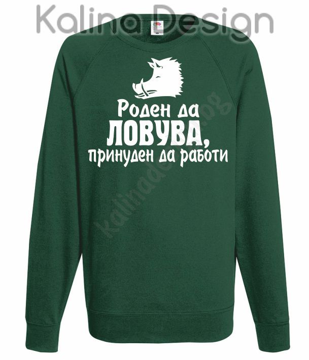 Блуза със забавен надпис - "Роден да Ловува, принуден да работи".Чудесен подарък за всички ловци с чувство за хумор.