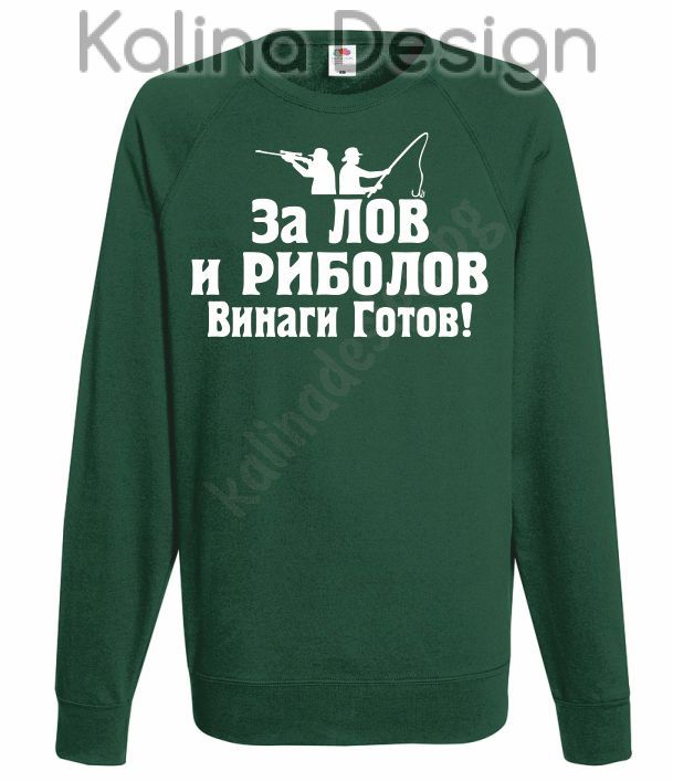 Блуза със забавен надпис - "За Лов и Риболов винаги готов!".Чудесен подарък за всички ловци с чувство за хумор.