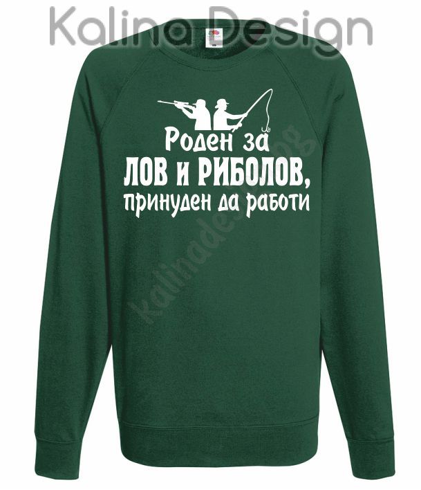 Блуза със забавен надпис - "Роден за Лов и Риболов, принуден да работи!".Чудесен подарък за всички ловци с чувство за хумор.