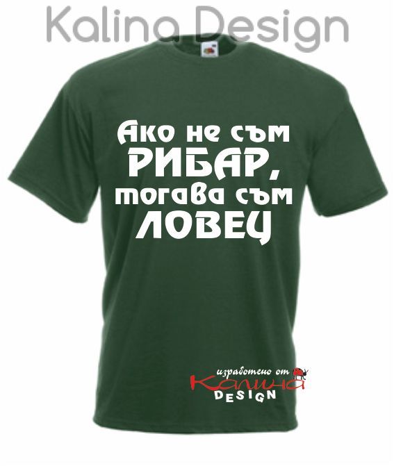 Забавна тениска за Ловци и Рибари с надпис "Ако не съм РИБАР, тогава съм ЛОВЕЦ". Чудесен подарък за всички ловци и рибари с чувство за хумор - за имен ден, рожден ден, юбилей, откриване на риболовния сезон и други поводи. Тениска 100% памук, производител Fruit of the Loom. Щампата е изработена от висококачествено текстилно фолио издръжливо на пране. Дизайн и печат на щампата - Калина Дизайн ЕООД.